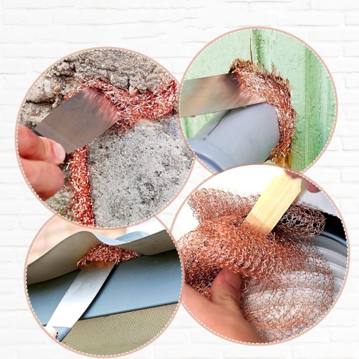🌿🌿Łatwa w użyciu: Miedziana siatka jest łatwa do cięcia i dostosowywania do rozmiaru otworu, wycinasz odpowiednią siatkę i po prostu wkładasz do otworu.
