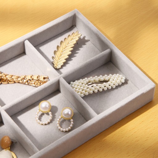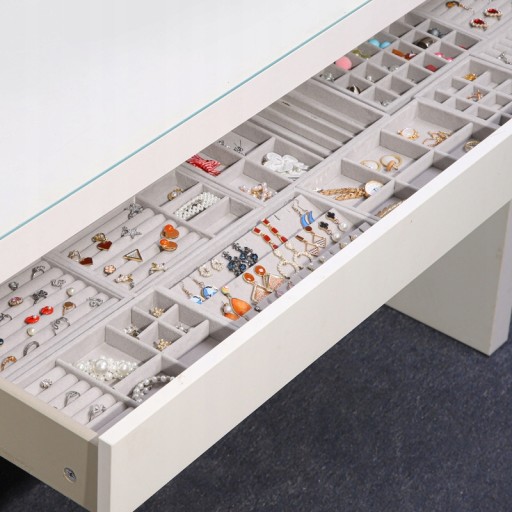 Zawartość opakowania: 2szt taca 18-siatkowa 2szt taca 6-rastrowa 2szt taca na pierścionek 2szt pusta taca 8 szt. Ściereczka do czyszczenia biżuterii 2 szt. Srebrny patyczek do czyszczenia