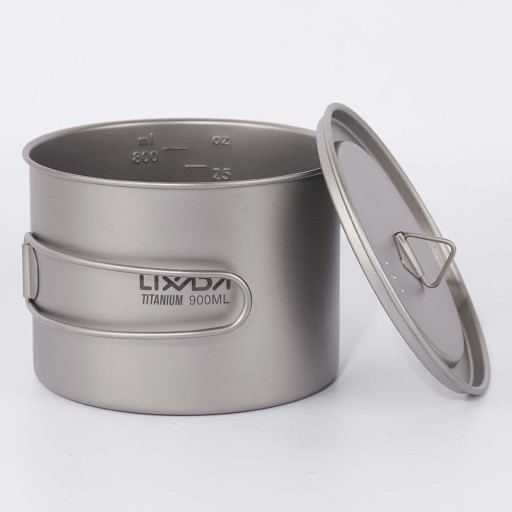 Титановый походный горшок емкостью 900 мл со складной ручкой.