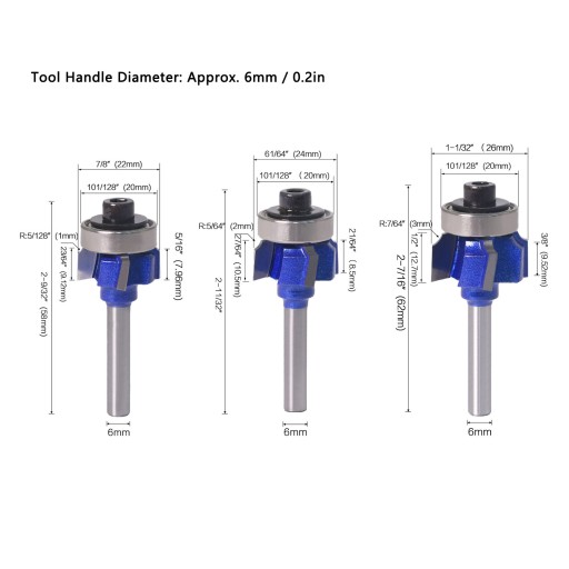 3шт круглая угловая фреза по дереву