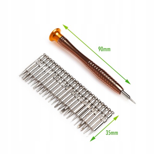 - Każdy element posiada swoje własne miejsce, co pozwala na zachowanie porządku oraz sprawną organizację miejsca pracy, a tym samym jej szybkie i dokładne wykonanie. Komplet przeznaczony jest zarówno do napraw telefonów, smartfonów i tabletów jak również wszystkich innych urządzeń i sprzętów, które posiadają niestandardowe, drobne śruby.