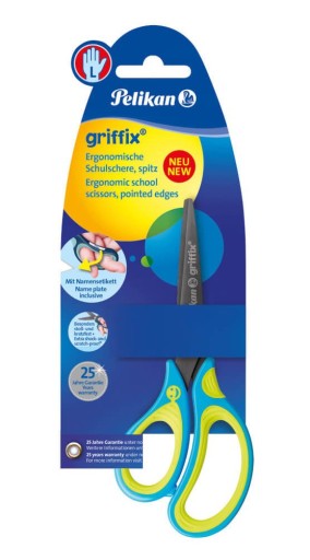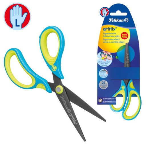 - Ergonomiczne nożyczki Pelikan Griffix dla leworęcznych przeznaczone szczególnie dla uczniów szkół podstawowych.