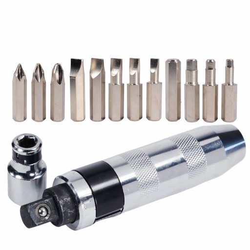 Solidny wkrętak stosowany do odkręcania, trudnych do poluzowania, zapieczonych śrub, których w tradycyjny sposób nie można odkręcić. Obroty lewo / prawo. Po uderzeniu obrót wkrętaka udarowego wynosi 90 stopni (1/4 obrotu).