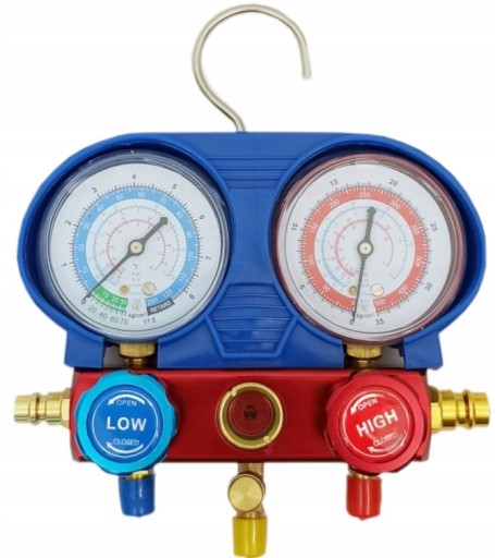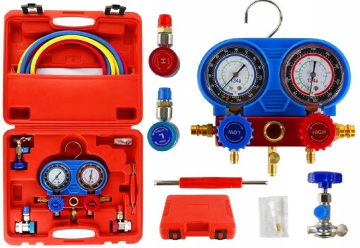 - Dwa manometry ze skalą na czynniki R22, R134, R12
