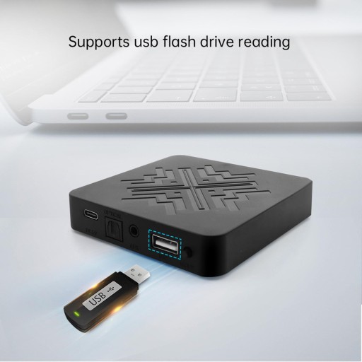 Maksymalną elastyczność zapewnia obsługa zarówno 3,5 mm AUX, jak i cyfrowego optycznego wyjścia audio. odtwarzanie, obsługuje dekodowanie wielu bezstratnych formatów audio; Obsługuje dekodowanie MP3/WMA/AAC/MP4/M4A//APE/WAV i innych formatów audio; Obsługuje regulację efektu dźwiękowego EQ i obsługuje sterowanie na podczerwień; Technologia Low Latency eliminuje opóźnienia dźwięku i pozwala cieszyć się szybkim, wysokiej jakości dźwiękiem/bezprzewodowym dźwiękiem. to większość telewizorów i domowych systemów stereo.