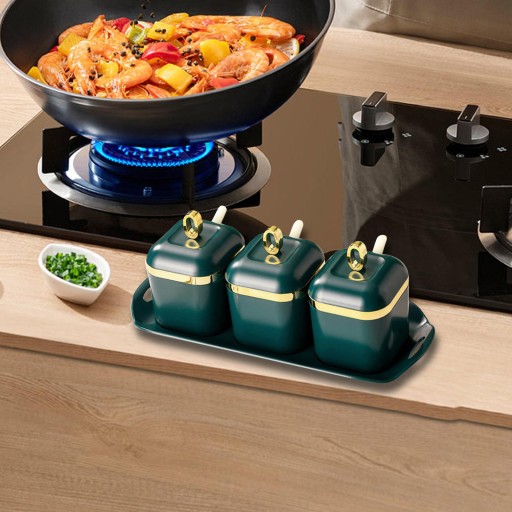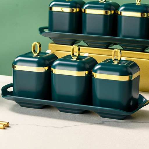 Коробочка для специй Современная баночка для специй Фарфоровая сахарница Три банки Зеленая