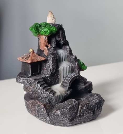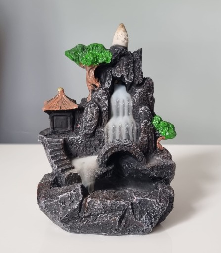 Kominki Zapachowe typu Backflow zostały specjalnie zaprojektowane tak, aby dym z kadzidełka spływał kaskadą w dół do pojemniczka na dole kominka. Dym z kadzidełka, który niczym mgła otacza kominek i spływa niczym mistyczna rzeka po wyżłobieniach oraz rowkach kominka.