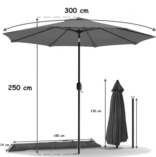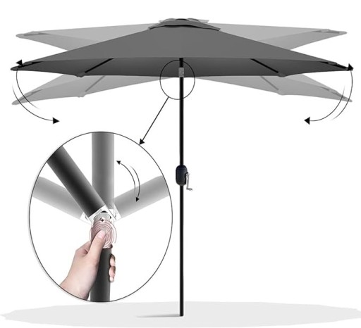 Duży PARASOL OGRODOWY składany za pomocą korby, dodatkowo można regulować kąt nachylenia parasola.