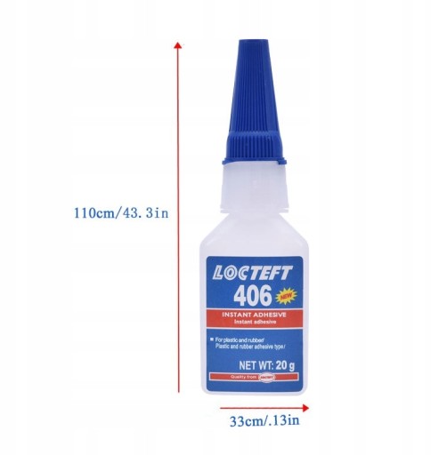Klej 406 to klej błyskawiczny cyjanoakrylowy o niskiej lepkości. Doskonale łączy tworzywa sztuczne, kauczuki i elastomery, świetnie nadaje się do klejenia o-ringów. Przy użyciu aktywatora Loctite 770 klei dodatkowo tworzywa trudnosklejalne (PTFE teflon, poliolefiny, gumę silikonową).