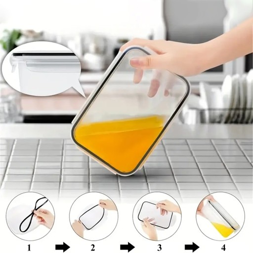 Każdy pojemnik wyposażony w uszczelniający silikonowy pasek i zamki pomiarowe, zapewniający świeżość przechowywanych produktów