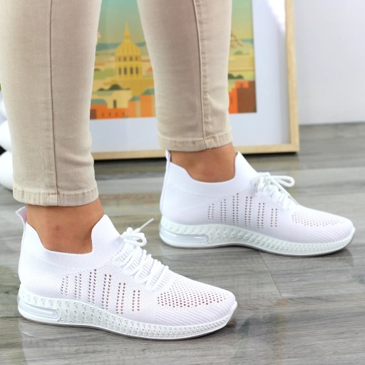 ДЫШАЩИЕ ЖЕНСКИЕ КРОССОВКИ ВОЗДУШНЫЕ КРОССОВКИ ДЛЯ ЭЛАСТИЧНОГО ЛЕТА 38 ИЗ БЕЛОГО МАТЕРИАЛА 38