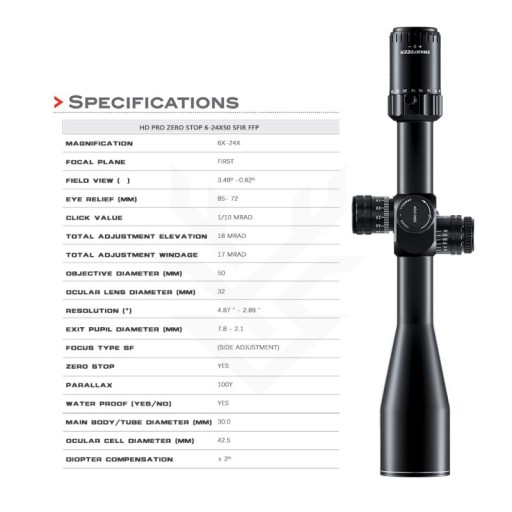 ⭐ Luneta Celownicza Swamp Deer HD Pro 6-24x50 FFP MRAD Zero Stop ⭐