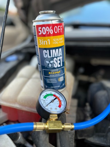 ClimaSet 3w1 R1234yf to specjalna formuła z olejem, uszczelniaczem oraz gazem. Puszka zawiera w sobie 235g zamiennika czynnika chłodniczego, który odpowiada 470g gazu R134a.