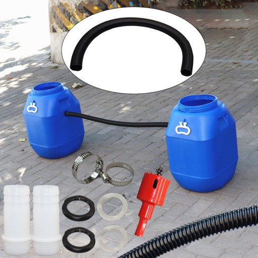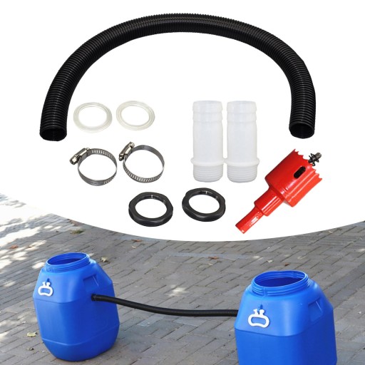Materiał: Zestaw przelewowy beczki na deszczówkę wykonany jest z najwyższej jakości materiału, jest lekki i może służyć przez długi czas.