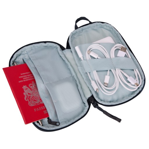 Kompaktowy organizer do kabli i akcesoriów oraz drobnych przedmiotów podczas transportu.