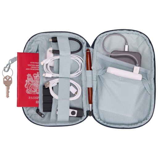 Kompaktowy organizer do kabli i akcesoriów oraz drobnych przedmiotów podczas transportu.