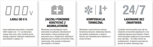 - Funkcja ładowania skrajnie rozładowanych akumulatorów (poniżej 1V).