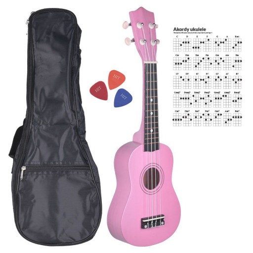 - W zestawie: ukulele sopranowe, czarny pokrowiec, 3 kostki do grania, akordy ukulele