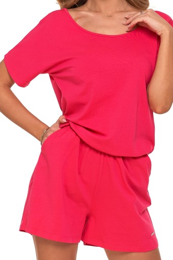Stylowy i wygodny kombinezon damski o krótkim kroju, idealny na ciepłe dni. Wykonany z wysokiej jakości bawełny z domieszką elastanu, kombinezon ten łączy elegancję z funkcjonalnością, zapewniając komfort i swobodę ruchu.