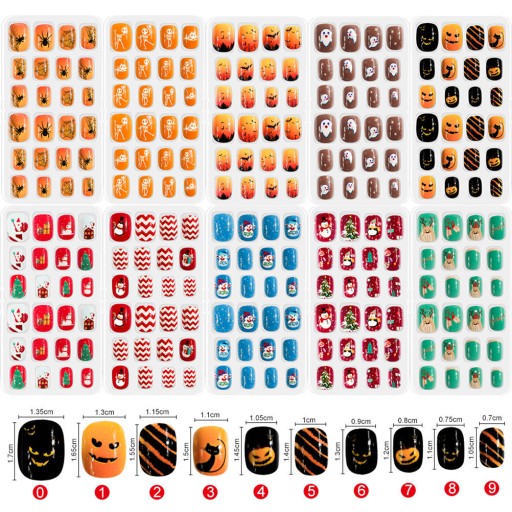 120 sztuk Halloween Boże Narodzenie Dzieci Fałszywe Paznokcie Wstępny Klej Pełna Pokrywa Stick On Nails Naciśnij Na Paznokcie dla Dziewczyn