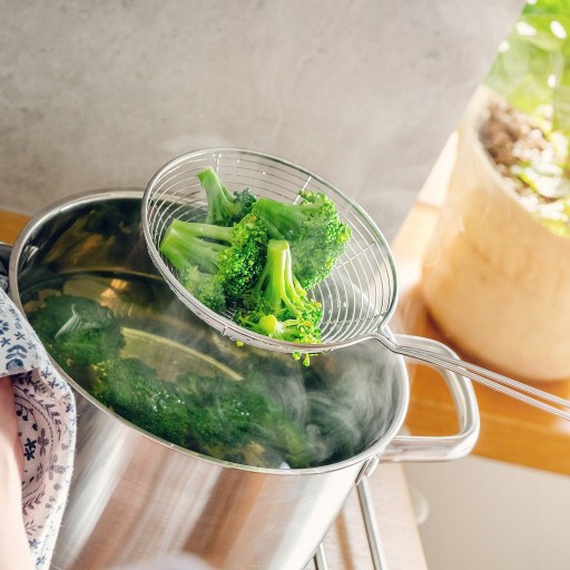 Świetnie sprawdzi się przy zbieraniu piany, która tworzy się podczas gotowania, a także do wygodnego wyjęcia i odcedzenia gotujących się warzyw.