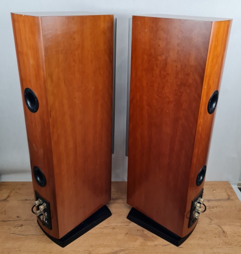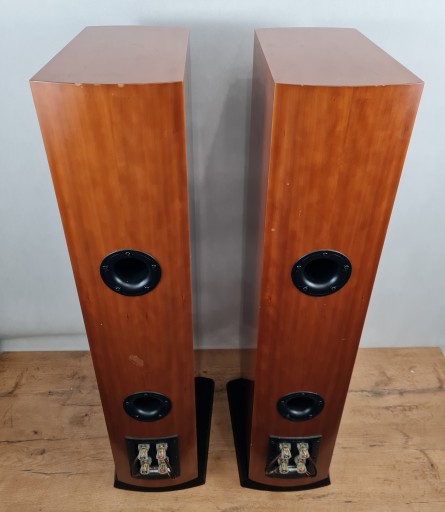 Stan wizualny – maskownica posiadają przetarcia, kolumny są dobrze zachowane , obudowy posiadają ślady użytkowania: rysy, otarcia, przetworniki w świetnej kondycji – zgodnie z fotografiami.