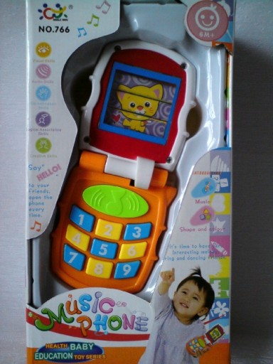 - PO OTWARCIU KLAPKI W TELEFONIKU NA WYŚWIETLACZU ZMIENIA SIĘ OBRAZEK, ZABAWKA ZACZYNA GRAĆ I ŚWIECIĆ.