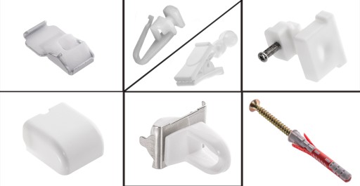- 2 sztuki białej zaślepki do szyny, które zamykają odkryte boki szyny z obu stron