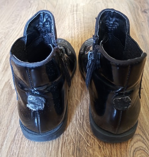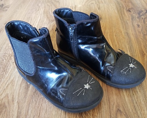 Stan oceniam na bardzo dobry, czubki stylizowane na kotki, zapinane na zamek z boku.