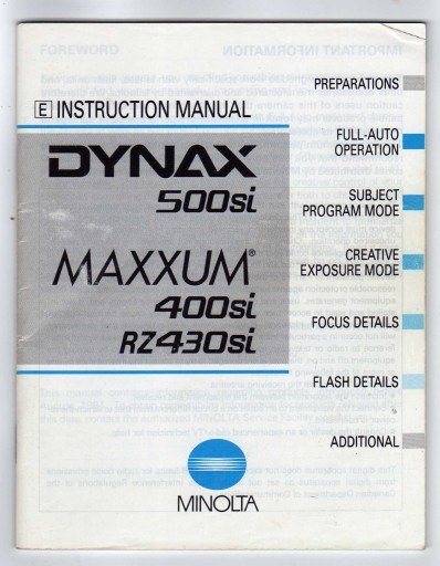 MINOLTA DYNAX 500si MAXXUM 400si RZ430si
