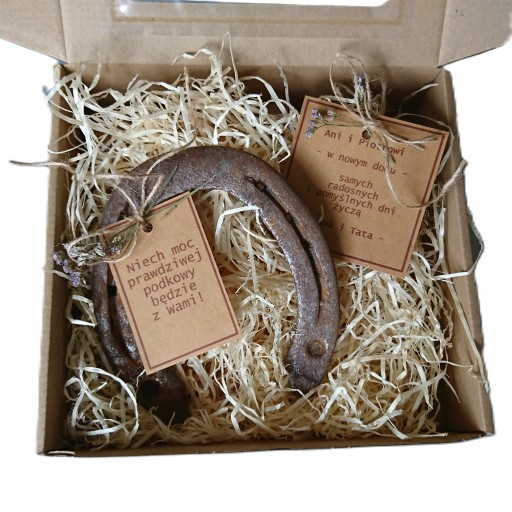 Podkowa jest zapakowana na prezent - gotowa do wręczenia!