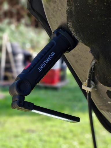 - Magnes na obrotowej końcówce, dzięki którym przymocujesz lampę do metalowej powierzchni pod wybranym przez siebie kątem.