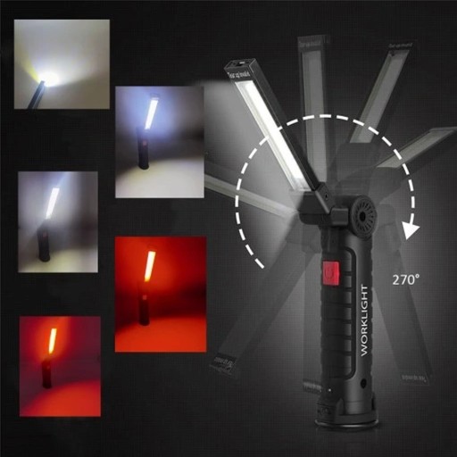 LAMPKA WARSZTATOWA LATARKA Z MAGNESEM USB 5w1 DO WARSZTATU 1200 mah LED