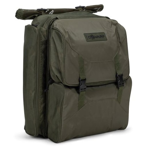 Plecak karpiowy z rewolucyjnym systemem modułowym, który pozwoli na szybki dostęp do każdej z komór, przez co jest on o wiele pojemniejszy i praktyczniejszy niż standardowy, jednokomorowy plecak. Specjalna, w pełni wodoodporna, zwijana podkładka zabezpieczy spodnią część plecaka, kiedy ułożymy go na podłożu by skorzystać z komór. Również wierzchnia część plecaka wykończona jest wodoodporną powłoką, która zabezpieczy zawartość w czasie ulewy. Po rozpięciu Dwarf Ruckall ukazują się dwie, rozkładane na boki, zapinane na zamek komory oraz jedna, pojemna komora główna. Na wewnętrznej stronie klapy komory głównej znajdziemy 4 mniejsze i 2 większe kieszonki z siatki na drobne akcesoria. Dzięki miękkiej wyściółce oraz wygodnym, regulowanym paskom naramiennym, plecak jest niezwykle wygodny, również podczas długich, pieszych wędrówek na stanowisko. Dwarf Ruckall to plecak dla nowoczesnego karpiarza, który ceni sobie kompaktowość, praktyczność i wygodę!