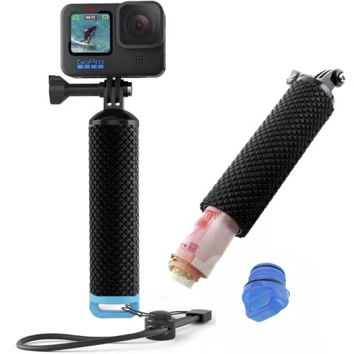 Upuść go w wodzie, a koniec rączki wyskoczy na powierzchnię, ułatwiając znalezienie kamery. Wygodna antypoślizgowa rączka pokryta specjalną gumą zapewnia pewny chwyt nawet kiedy jest mokra. Dodatkowo w zestawie znajduje się pasek na nadgarstek. Idealne rozwiązanie do surfowania, kajakarstwa, nurkowania i innych sportów wodnych.