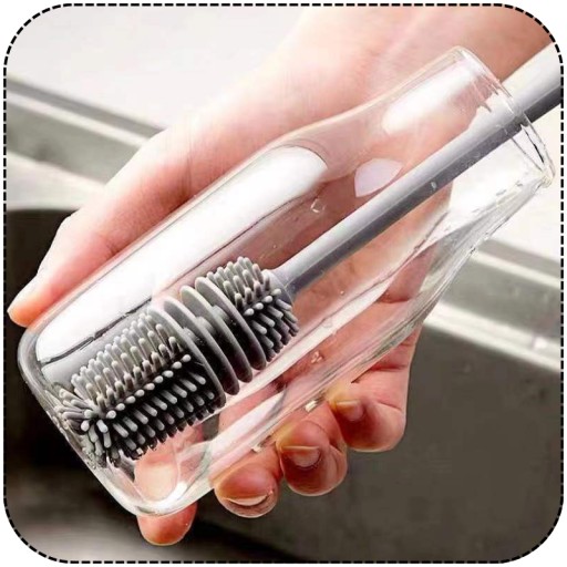 СИЛИКОНОВАЯ ЩЕТКА ДЛЯ МЫТЬЯ СТЕКЛОВ, ФАРФОРОВЫХ БУТЫЛОК, ДЛИННАЯ