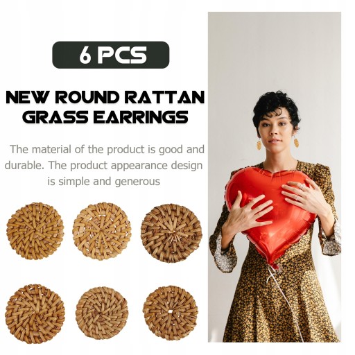 Ten przedmiot to zestaw 6 sztuk biżuterii DIY charms, wykonanych z rattanu, trwałych w użyciu. Jest naprawdę dekoracyjna i praktyczna. Charakteryzuje się techniką tkania rattanu, co dodaje mu atrakcyjności. Ładny dodatek dekoracyjny do majsterkowania kolczyków lub innej biżuterii.