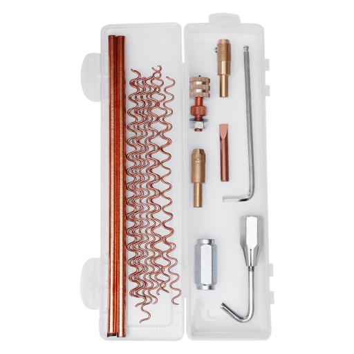 1 x zestaw końcowy (młotek, pręt węglowy, linka falista, hak, hak, przyssawka ręczna, uszczelka, głowica do zgrzewania punktowego, głowica do zgrzewania głównego).