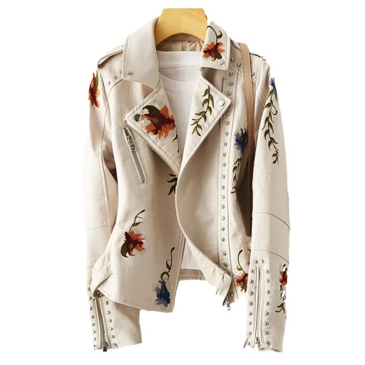 ELEGANCKA KURTKA RAMONESKA SKÓRZANA DAMSKA KWIATY