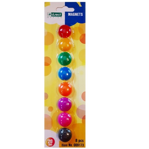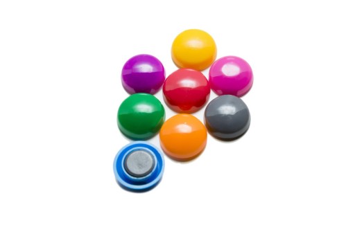 Mocne magnesy w rozmiarze 15 mm, przeznaczone do tablic magnetycznych. Umożliwiają mocowanie dokumentów, notatek, rysunków lub zdjęć do każdej powierzchni magnetycznej. Doskonale sprawdzą się w biurze, domu, szkole oraz przedszkolu. Pomocne podczas prezentacji czy wykładów. Idealne na lodówkę. Nie rysują podłoża. Pakowane po 10 sztuk w miksie kolorystycznym.