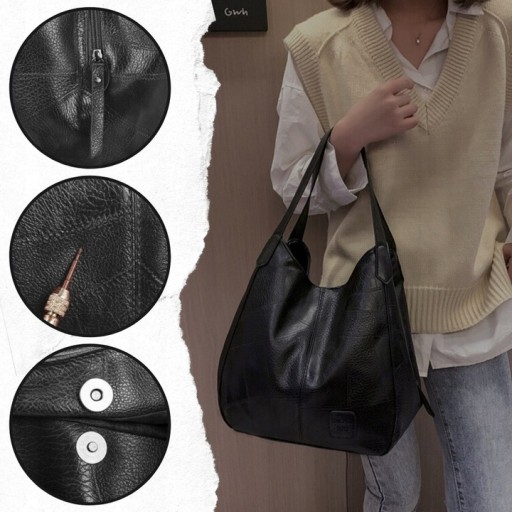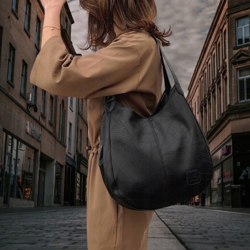 TORBA Czarna Pojemna Shopper Torebka Na Ramię Duża