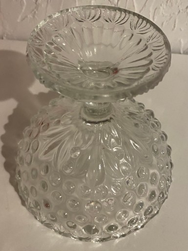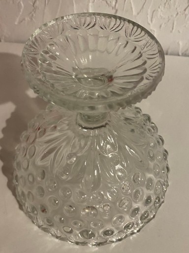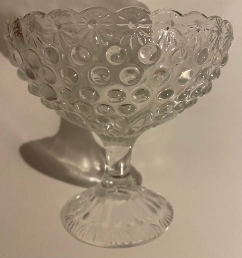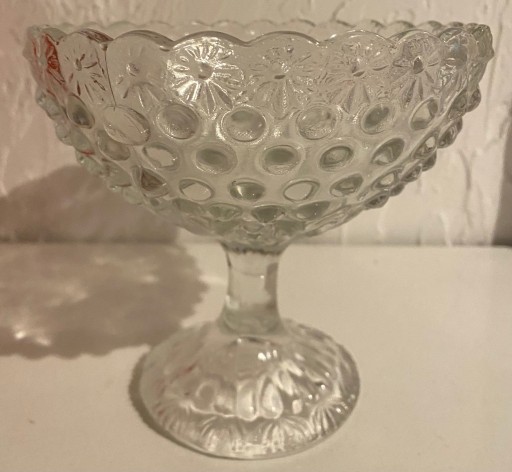Na sprzedaż owocarka, patera, bomboniera projektu Drost, stylizowana jak Asteroid, Huta Szkła Gospodarczego Ząbkowice. Szkło prasowane, bezbarwne.