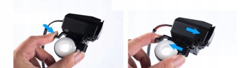 Gniazdo posiada włącznik ON/OFF i kabel o długości ok. 55cm do podłączenia do akumulatora. Dołączony do zestawu uchwyt umożliwia montaż na kierownicy. Ładowarka została zaprojektowana do działania w niesprzyjających warunkach atmosferycznych i jest wyposażona w osłonę gniazd zabezpieczające przed wodą.
