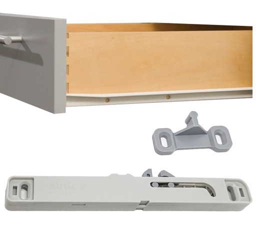 Zastosowanie spowalniacza AIRTIC pozwoli na rozbudowanie funkcjonalności zwykłych prowadnic rolkowych. Mechanizm spowalniacza wyłapie ruch szuflady przy zamknięciu i spowoduje ciche domknięcie szuflady. Oczywiście spowalniacz można zamontować do już zainstalowanych w meblu szuflad rolkowych
