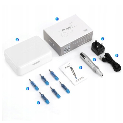 Wyposażony w 6 cylindrów z mikroigłami (3 12-igłowe i 3 36-igłowe), można wymieniać różne strzykawki w zależności od różnych potrzeb związanych z pielęgnacją skóry.
