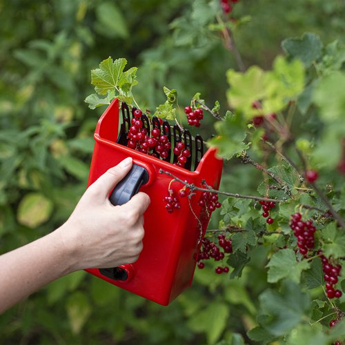 Przyspieszysz zbiory m.in. dzięki dużej pojemności pojemnika na owoce, a uchwyt umieszczony na górze pojemnika daje komfort podczas długich zbiorów. Doskonale się sprawdzi także podczas zbiorów w lesie. Zamieszczona podkładka na dole zbieraczki wyposażona jest w ząbki z przodu, aby przeczesywać krzewy i gałązki, a cała faktura spodu sprzyja unikaniu zbierania zbędnych listów, niepotrzebnej roślinności, czy innych zanieczyszczeń. Warto pamiętać, że niektóre z owoców ulegają uszkodzeniu na krzewie bądź już w pojemniku, dlatego dolna kratka pomaga w pozbyciu się ściekającego soku z owoców i chroni nas przed ewentualnymi zabrudzeniami w przyszłości.