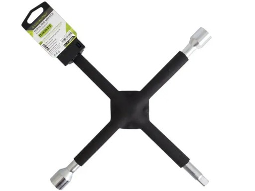 Wysokiej jakości klucz polecany do domowej wymiany kół i jako wyposażenie samochodów osobowych i dostawczych. Poradzi sobie z najbardziej zapieczonymi śrubami. Posiada 4 ramiona z nasadkami sześciokątnymi, 3 metryczne w rozmiarach 17mm, 19mm, 21mm i 1/2". Dodatkowo ramiona pokryte są powłoką gumową co powoduje, że klucz się nie ślizga podczas odkręcania. Wzmocniona konstrukcja.