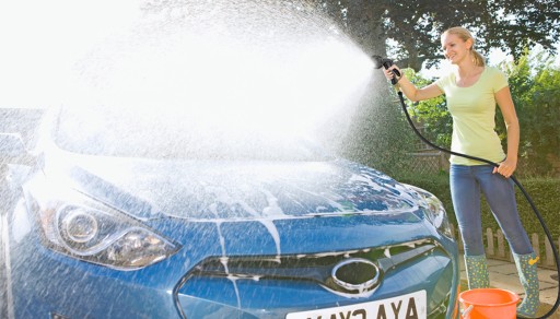 Specjalnie wyprofilowany wieszak w kształcie haka, bez problemu przymocować można np. do ściany w garażu. Dodatkowy otwór pozwala również na zawieszenie haka bezpośrednio na kranie bez potrzeby odłączania węża.