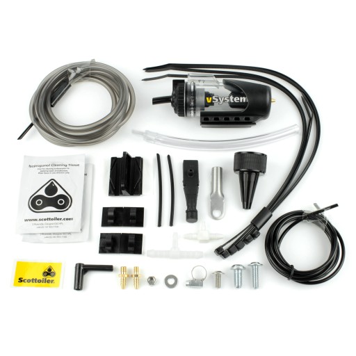 Scottoiler Micro V Essentials Kit zawiera wszystkie niezbędne elementy montażowe do instalacji.
