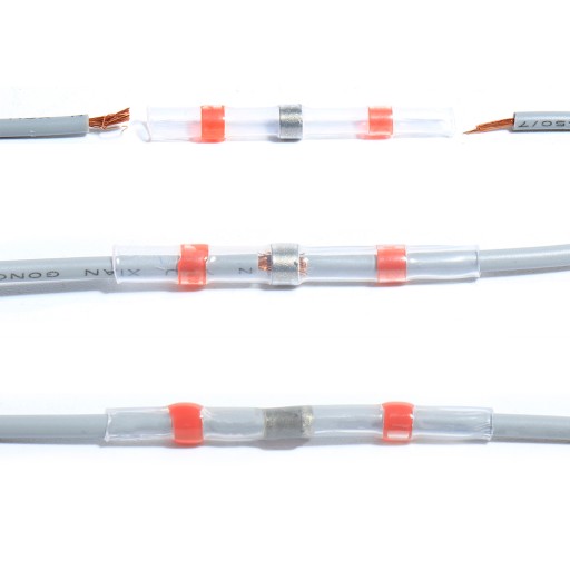 - Wystarczy wprowadzić kable, za pomocą szczypcami i obkurczyć izolację przy użyciu suszarki na gorące powietrze.